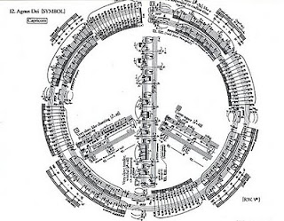Muchas veces escuchamos a la gente decir que en música todo está inventado y que los compositores contemporáneos no hacen más que desvariar. Este discurso no es nuevo. Yo me imagino que lleva diciéndose desde que la música existe. Desde luego, a Crumb se lo dijo alguien, que después de Cage y el piano preparado no había nada más que hacer. Pero Crumb, no sé si consciente o inconscientemente demostró que aún se pueden hacer muchas cosas con un Piano. Crumb es un entusiasta del timbre. Cuando coge un instrumento, nunca lo toma de manera tradicinal. Busca mil y una formas diferentes de acercarse a él para descubrirnos un universo sonoro nuevo. Así pues, en Makrokosmps se mete dentro de la caja del piano para acercarse a ella con cadenas, monedas, vasos, papeles, con los dedos, las manos... todo lo que uno puede imaginarse. Y lo mejor es que el resultado es de una coherencia asombrosa. No nos pasa como en otras piezas en las que el "efecto" parewce que está metido con sacacorchos, o que cuando el pianista tiene que levantarse de su butaca para, por ejemplo, rozar una cuerda, se pierde la continuidad del discurso. Aquí todo está medido. A Crumb le gusta mucho introducir elementos de teatralidad en su música y cuando el pianista se levanta, queda bien. Incluso, en algunos números, hace dibujos con las partituras, (¡sí, como en el Ars subtilior!) con la intención de que el pianista tenga que levantarse y girar la partitura.